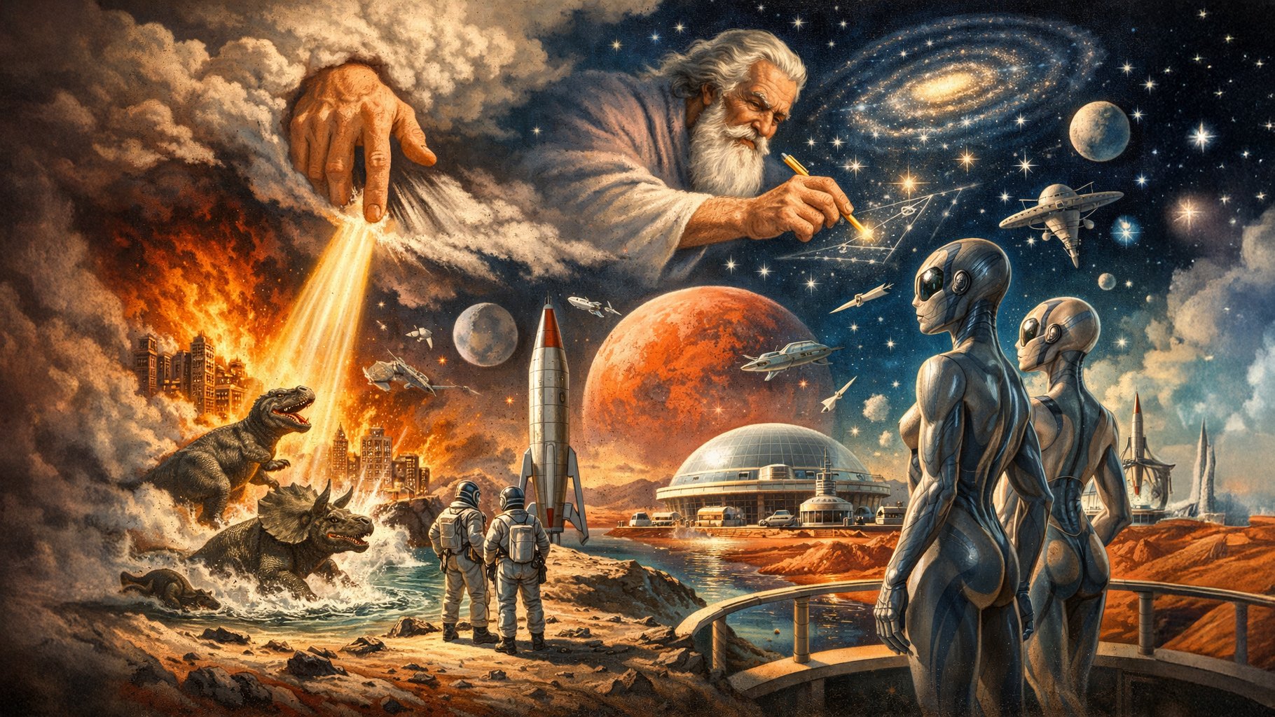 Every few generations, God likes to wipe out whoever and whatever’s left on Earth and start over from scratch. Mostly, it’s due to archaic designs, like the dinosaur, or widespread wickedness, like right before Noah’s trans-oceanic cruise aboard the ark. I know God said He wouldn’t pull another stunt like that, but we’re overdue, and even God gets to change His mind. Think about it. What’s left? We’ve explored every far corner of the known world. The only places left to go are other planets. We’re not built for that. Sure, we can reach the moon, and quite possibly Mars, but once we get there, we can’t stay without radical adaptations. It’s not like here on Earth, where we can put on clothes, light a fire, or crank up the AC. Up in the heavens, we can’t even breathe without some sort of mechanical aid. Rather than go through all that, I think it’s far more likely that God will simply go back to the drawing board and create a whole new species that can live in any atmosphere and handle the rigors of interplanetary space travel without the need for artificial intelligence.