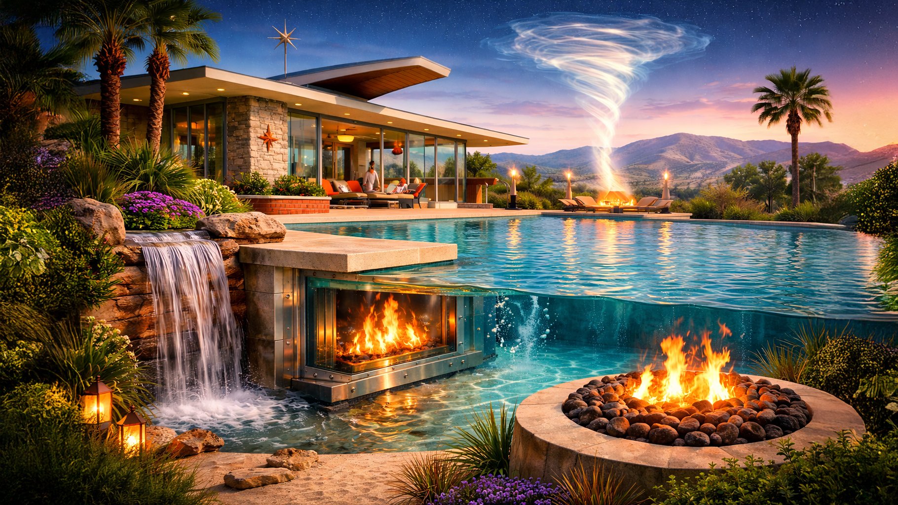 If I were an architect, which I’m not, I’d focus on fire and water, both inside and outside the house. I’d have multiple locations in the backyard with grills and fire pits of different sizes and function. Open pits, covered grills, with pulleys, chains, and gears. Pools of varying temperatures. Comfortable year-round access to all of them. Safety features galore. Vesuvius.
