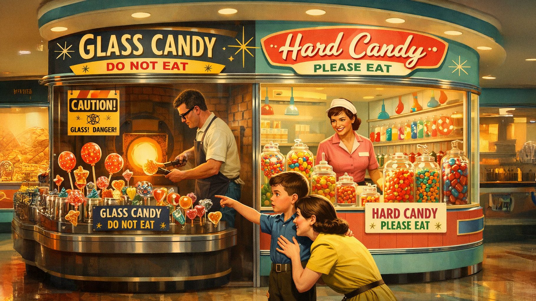 If you were to locate the glass studio candy shop next to a hospital and a dental office, that could go a long way towards mitigating the risk. Accidents do happen, regardless. The only way to prevent this kind of accident is to prohibit glass blowers from blowing candy in the first place. Nobody wants to do that, and who can blame them? It’s up to parents to teach their kids not to eat glass candy, and it’s up to grownups to know the difference between the two.