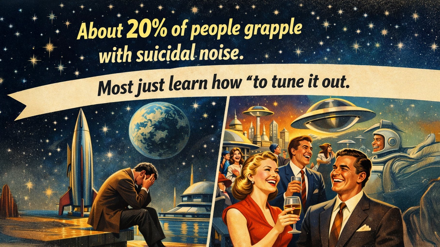 I've had that suicidal noise inside my head for over 40 years. I could've pulled the plug but didn't. Maybe that makes me a phony. I never even tried. Still, the thoughts return. When I'm in it, I'm up to my eyeballs in feeling sorry for myself. And then it goes away till the next time.