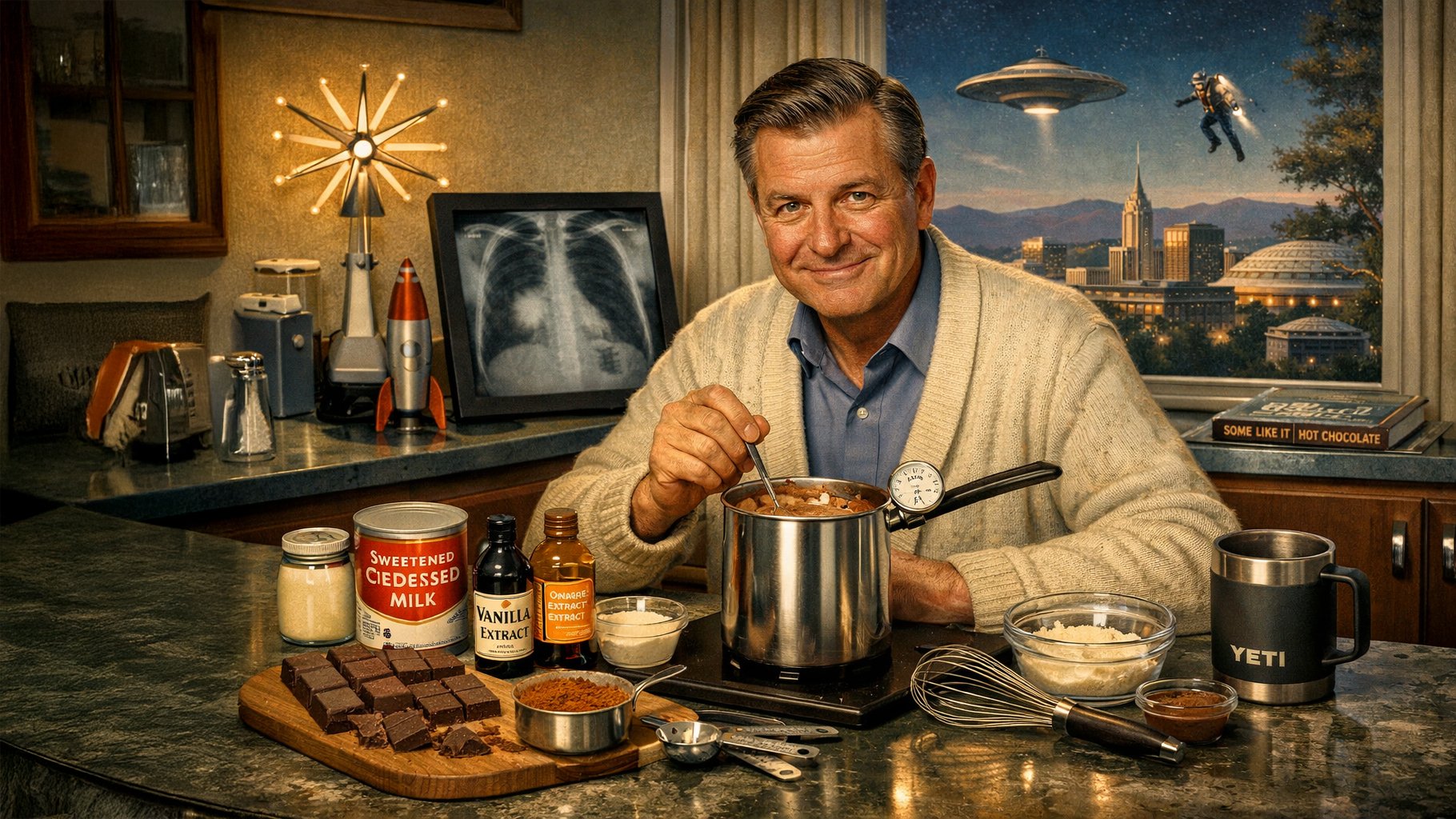The following spring, when it was too warm to drink hot chocolate, my wife left for a job in LA, leaving me alone with my chest x-ray. There was a spot on the x-ray that could’ve either been my heart or my lungs. Nothing wrong with my heart, as far as I could tell, so I assumed it must be lung cancer. I made a farewell video and posted it to YouTube without telling my wife. I didn’t want her to worry.