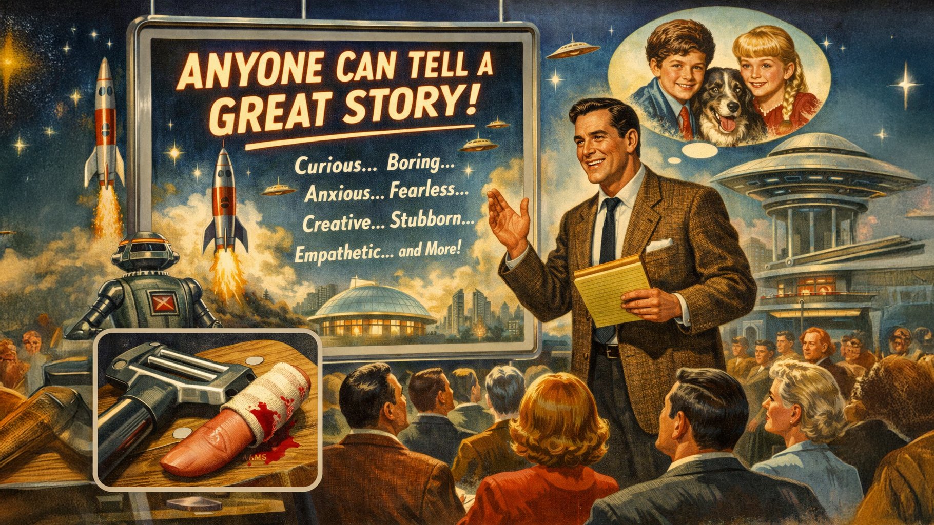 Not a comprehensive list, but it covers a lot of the important bases. Let’s assume these are true about the people describing themselves. Want to know what each of those types of people have in common? They can all tell great stories, if they want to. Maybe they need somebody to show them how. Somebody like me, for instance. Yes, I can teach this stuff. Hey, not all writers are shy. Remember, I’ve been telling stories since Jed and Stefia, along with hogging stages every chance I get.